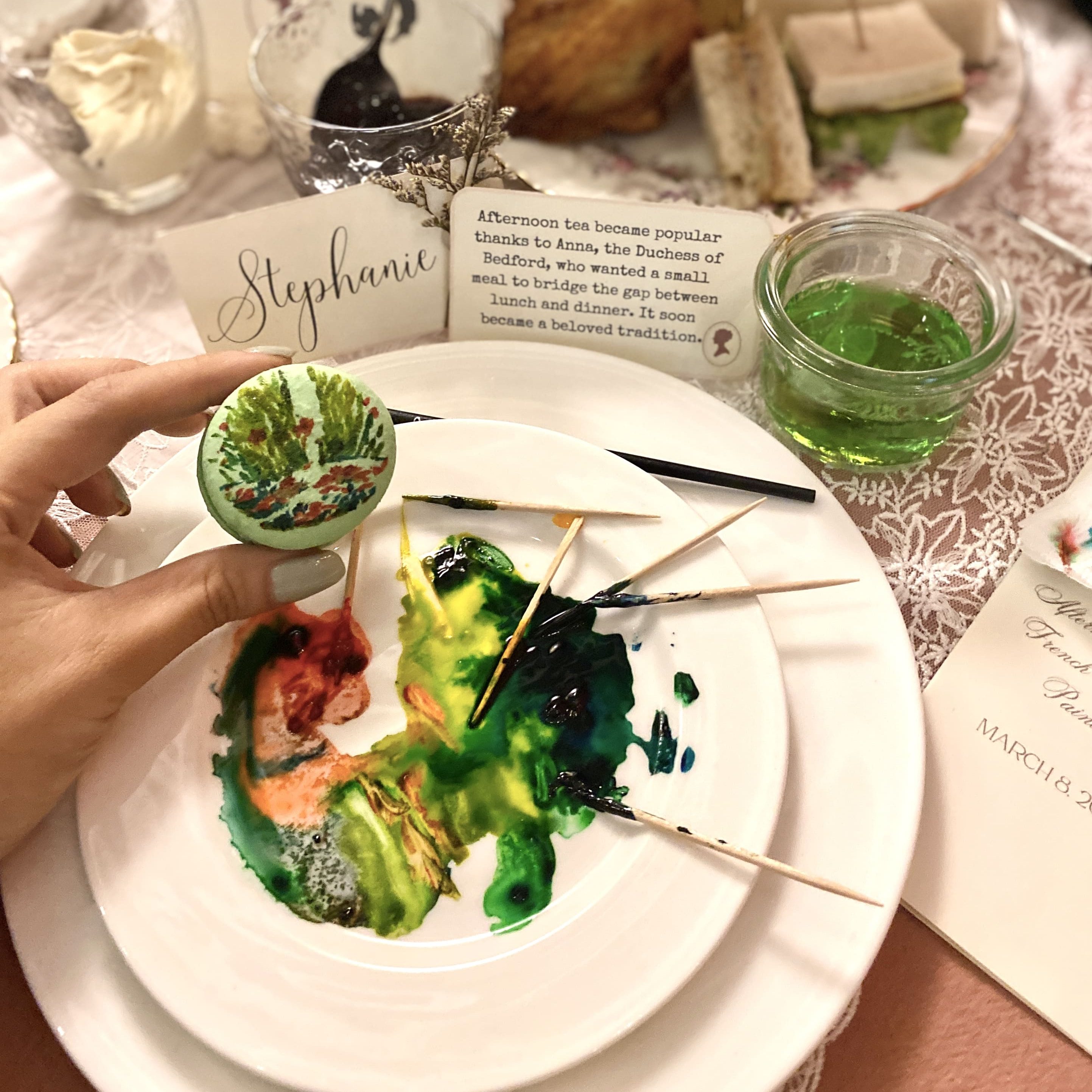 The event was priced at P1000 per person inclusive of 6 macarons, a tray of pastries + hors d’oeuvre and the food painting supplies.